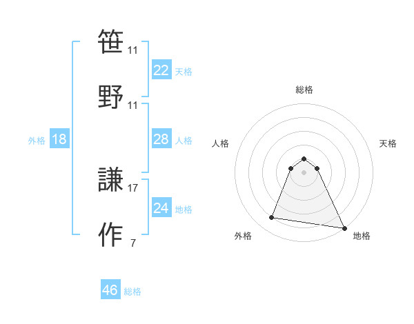 笹野 謙作さんを姓名の画数から五運を鑑定