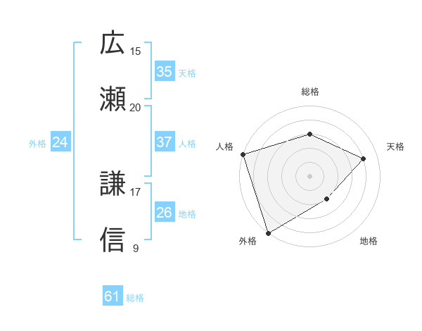 広瀬 謙信さんの総格は61画の3点!