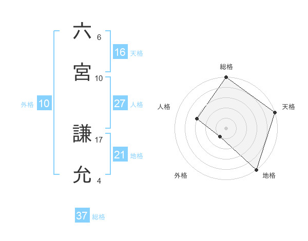 六宮 謙允さんの天格は16画の5点!