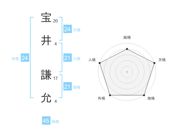 宝井 謙允さんの総格は45画の4点!