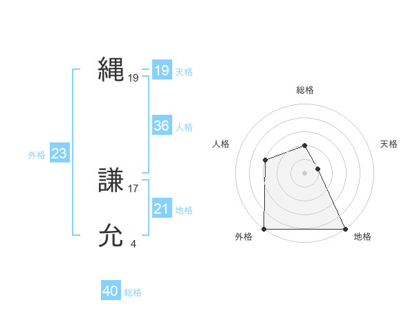 縄 謙允さんの外格は23画の5点!