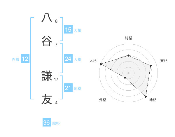 八谷 謙友さんの天格は15画の4点!