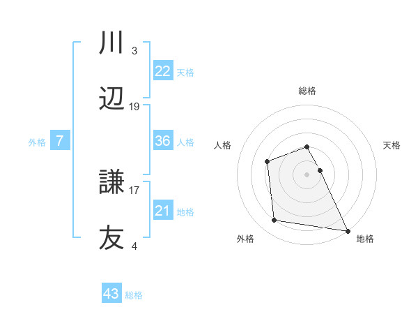 川辺 謙友さんを姓名の画数から五運を鑑定