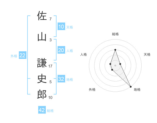 佐山 謙史郎さんを姓名の画数から五運を鑑定