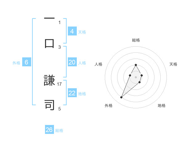 一口 謙司さんの総格は26画の2点!