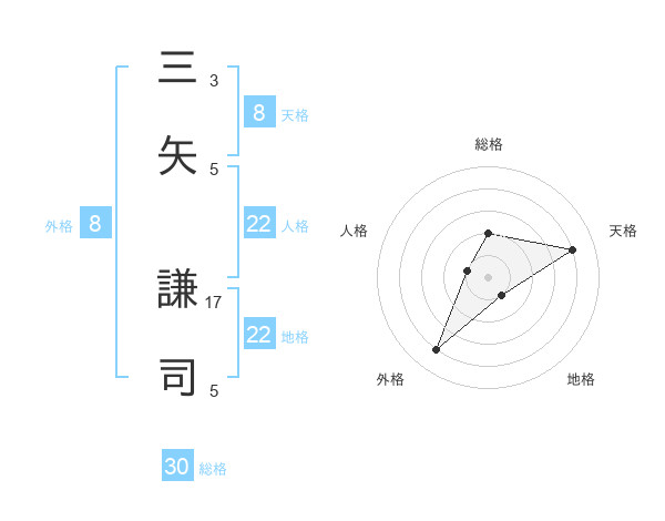 三矢 謙司さんの天格は8画の4点!