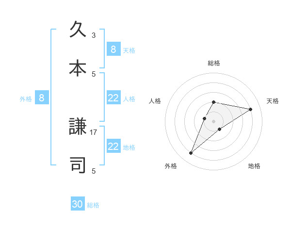 久本 謙司さんの天格は8画の4点!