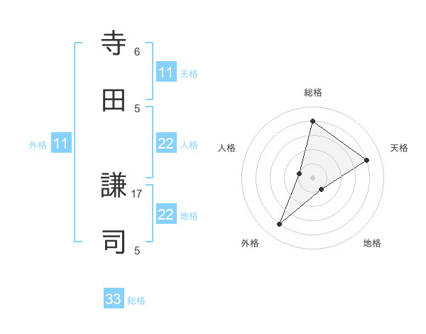 寺田 謙司さんを姓名の画数から五運を鑑定