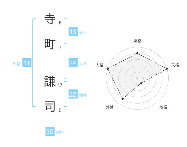 寺町 謙司さんを姓名の画数から五運を鑑定