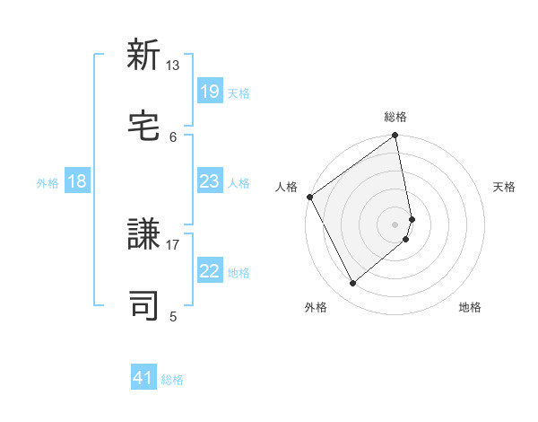 新宅 謙司さんを姓名の画数から五運を鑑定