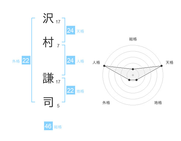 沢村 謙司さんを姓名の画数から五運を鑑定