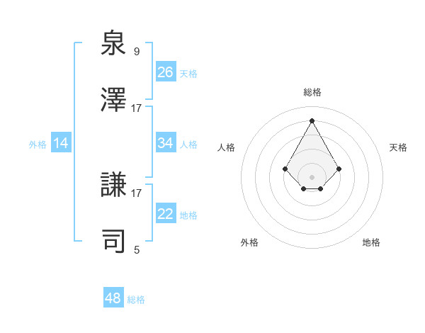 泉澤 謙司さんの天格は26画の2点!