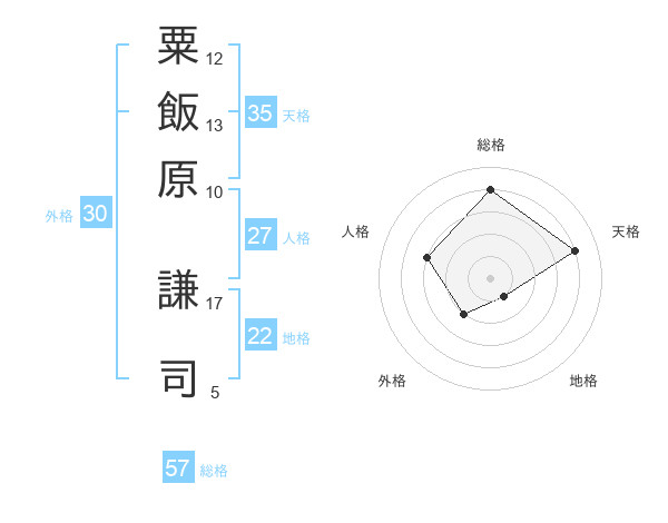 粟飯原 謙司さんの総格は57画の4点!