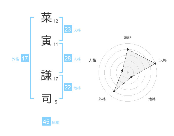 菜寅 謙司さんの天格は23画の5点!