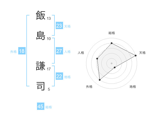飯島 謙司さんの総格は45画の4点!