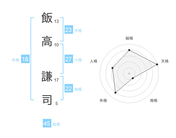 飯高 謙司さんの総格は45画の4点!
