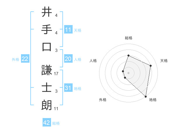 井手口 謙士朗さんを姓名の画数から五運を鑑定