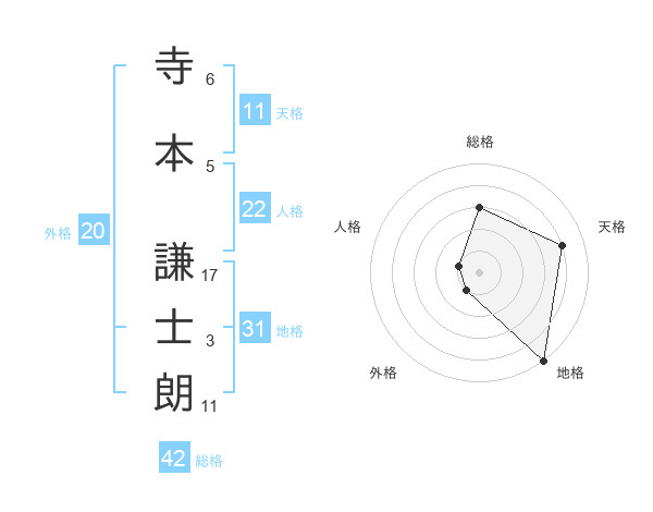 寺本 謙士朗さんを姓名の画数から五運を鑑定