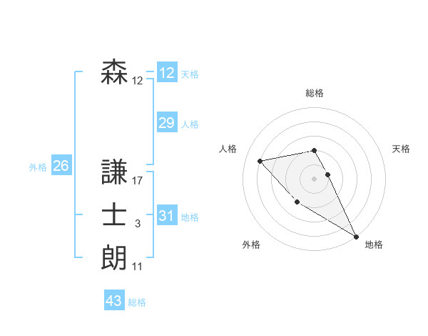 森 謙士朗さんを姓名の画数から五運を鑑定