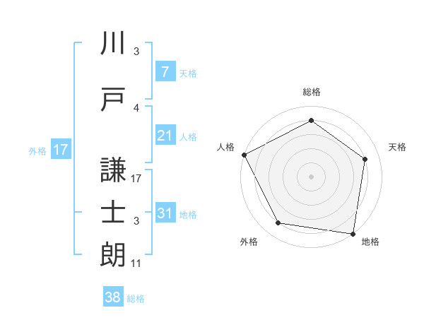 川戸 謙士朗さんの総格は38画の4点!