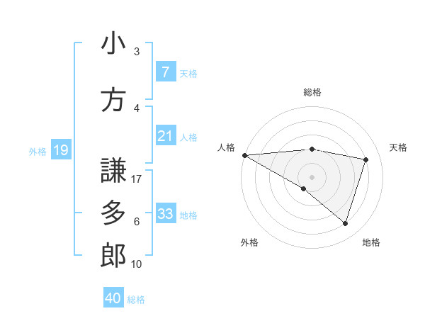 小方 謙多郎さんの総格は40画の2点!