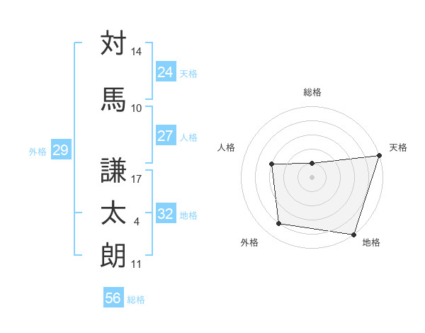 対馬 謙太朗さんを姓名の画数から五運を鑑定