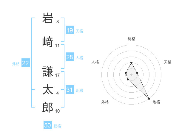 岩﨑 謙太郎さんを姓名の画数から五運を鑑定