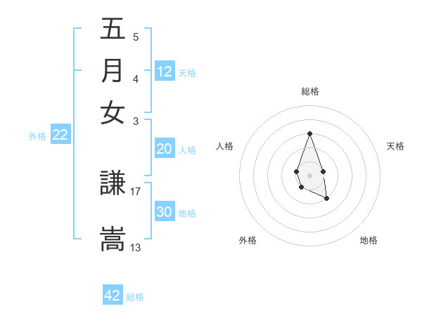 五月女 謙嵩さんの総格は42画の3点!