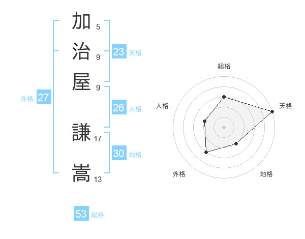 加治屋 謙嵩さんの総格は53画の3点!