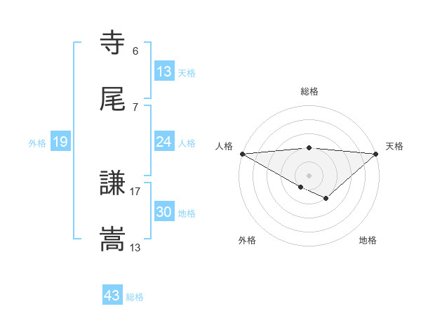寺尾 謙嵩さんの天格は13画の5点!