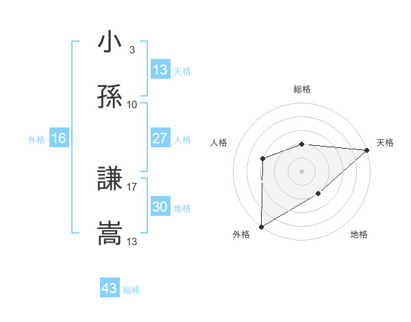 小孫 謙嵩さんを姓名の画数から五運を鑑定