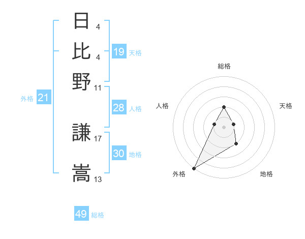 日比野 謙嵩さんを姓名の画数から五運を鑑定