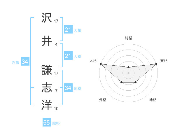 沢井 謙志洋さんを姓名の画数から五運を鑑定