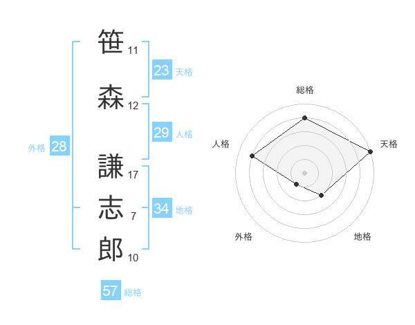 笹森 謙志郎さんを姓名の画数から五運を鑑定