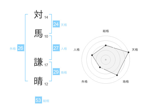 対馬 謙晴さんを姓名の画数から五運を鑑定