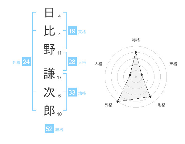 日比野 謙次郎さんを姓名の画数から五運を鑑定
