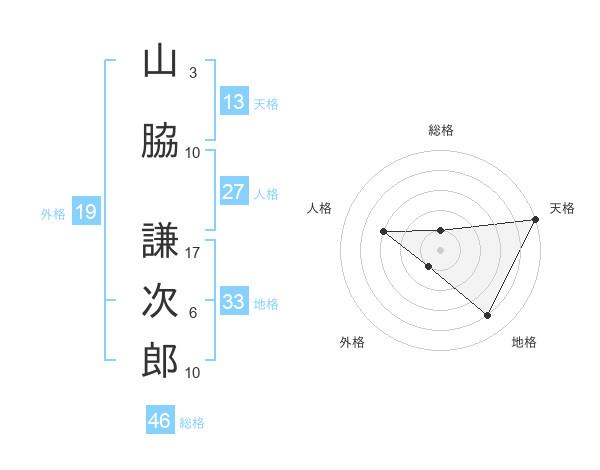山脇 謙次郎さんを姓名の画数から五運を鑑定