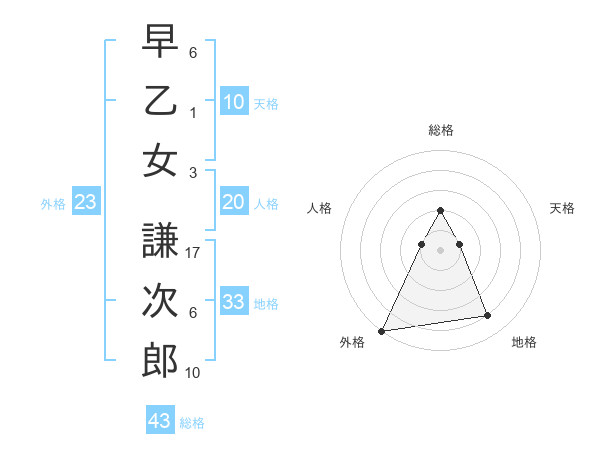 早乙女 謙次郎さんの名前の鑑定結果は!