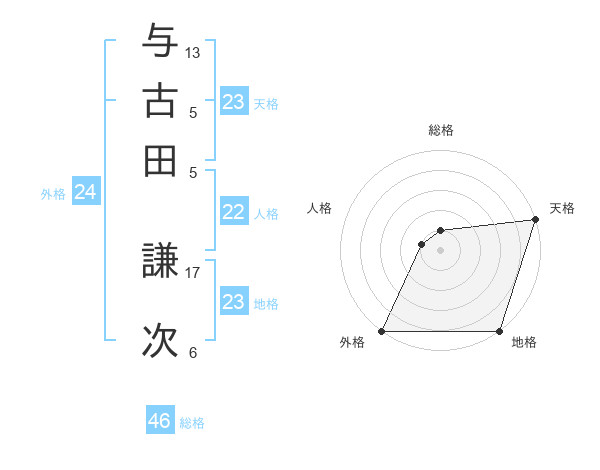 与古田 謙次さんの天格は23画の5点!
