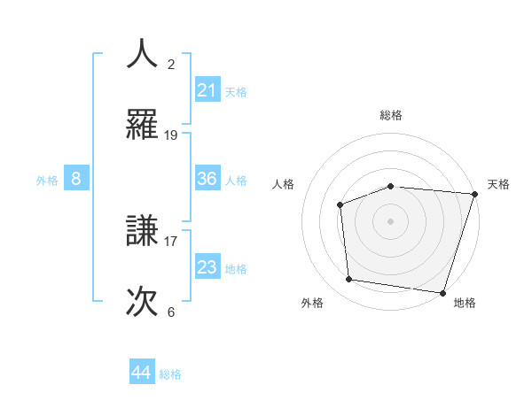 人羅 謙次さんの総格は44画の2点!