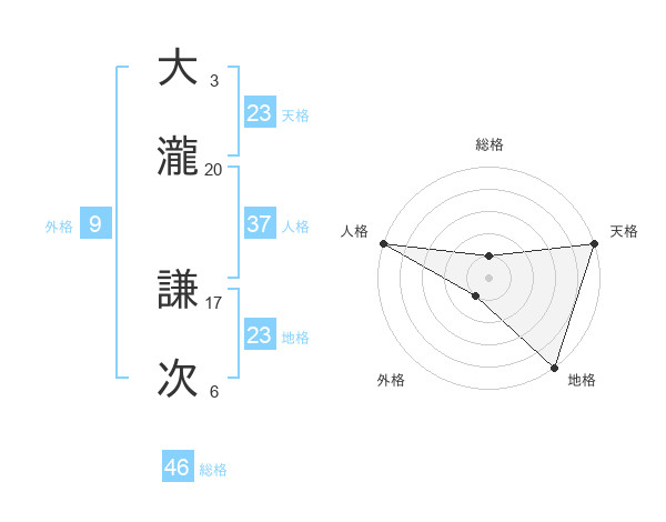 大瀧 謙次さんを姓名の画数から五運を鑑定