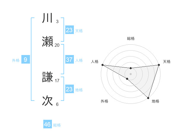 川瀬 謙次さんの天格は23画の5点!