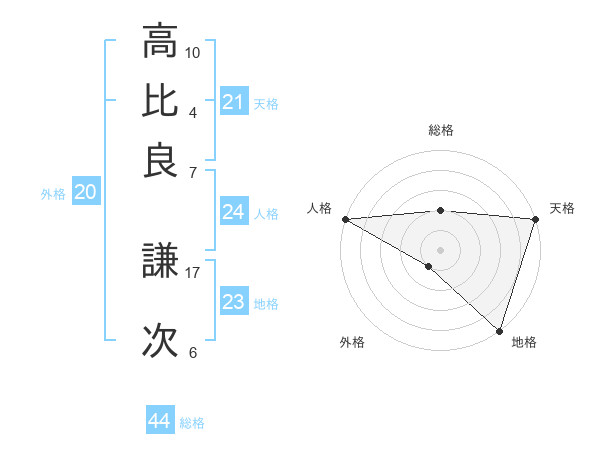 高比良 謙次さんの天格は21画の5点!