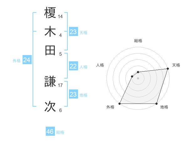 榎木田 謙次さんを姓名の画数から五運を鑑定