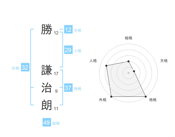 勝 謙治朗さんを姓名の画数から五運を鑑定