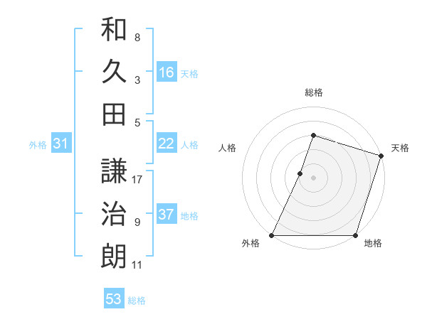 和久田 謙治朗さんの総格は53画の3点!