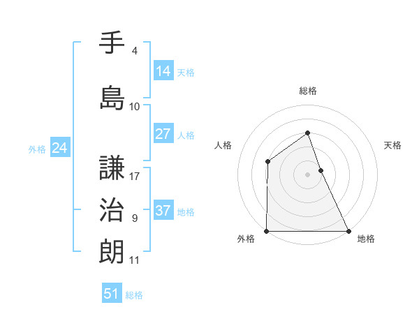 手島 謙治朗さんを姓名の画数から五運を鑑定