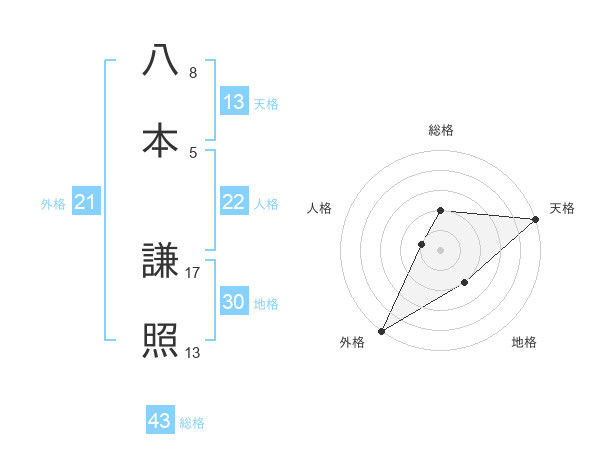 八本 謙照さんの外格は21画の5点!