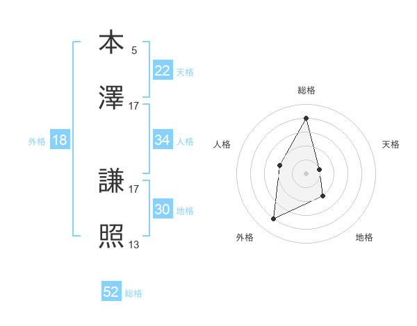本澤 謙照さんの天格は22画の1点!