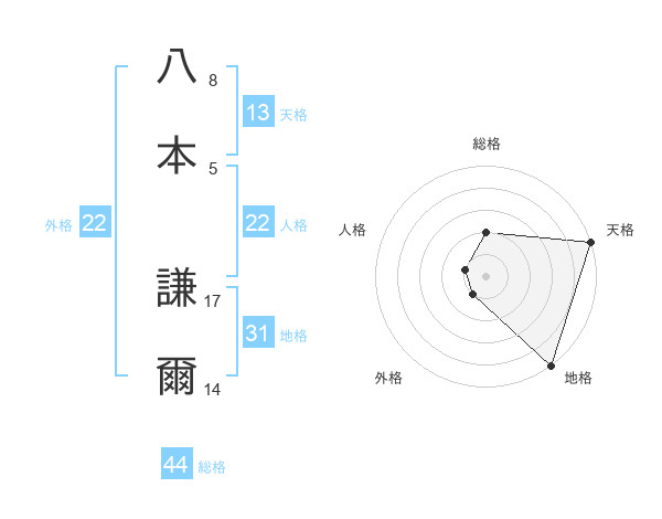 八本 謙爾さんを姓名の画数から五運を鑑定